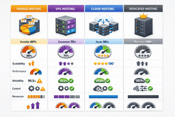 | Hosting Type | Scalability | Cost Model | Reliability | Best For |